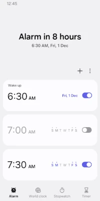 • Notifications: Used to show ongoing timers and notify you about upcoming and missed alarms