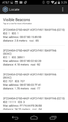Features: * See any beacon, even if you don't know its identifiers * Now detects and decodes Eddystone beacons * Transmit as a beacon (Nexus 6, Nexus 9 and select Android 5.0 devices only) * Configurable to use a wide variety of beacon formats * Allows you to calibrate beacons you own