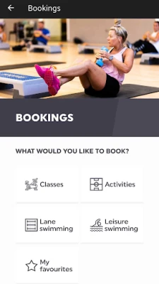 FITNESS CLASS BOOKINGS Check availability, make a booking, amend a booking or cancel a booking – all on the move!